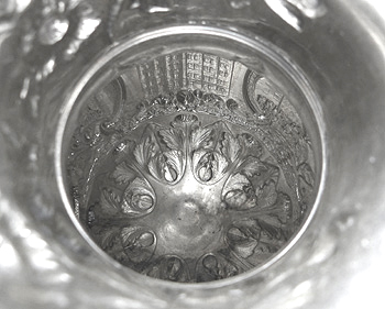 When this important piece of fire department memorabilia arrived, dents had to be removed, extensive encrustation dissolved, and a good overall cleaning performed, including removal of decades-old dried silver polish. The encrustation had etched large areas of the ewer's surface, which was left intact. (The etching could have been burnished smooth, but that wasn't requested by the collector.) Above: Removing encrustation after the dents were removed. |