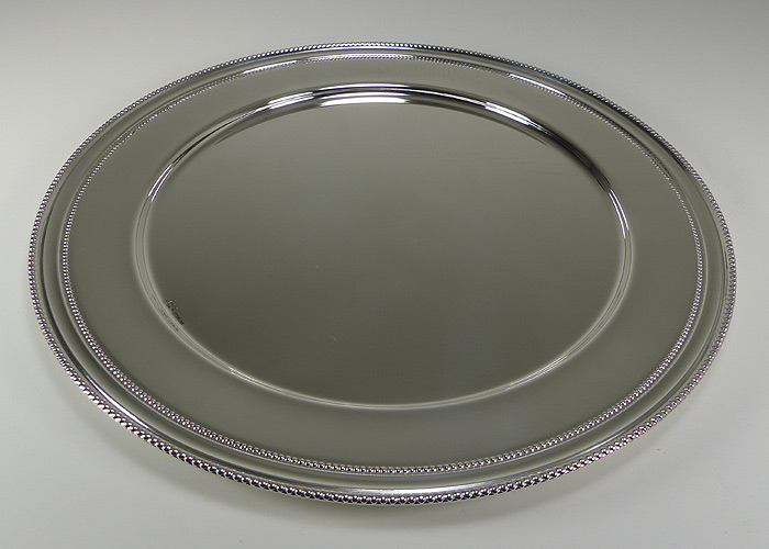 The plate above is covered with rouge-burn, not tarnish. Unlike firestain which is visible over time through aggressive polishing, rouge-burn happens when non-ferrous metal is polished using a polishing machine with a buff traveling at a high rate of speed. If too much pressure is applied to the object, the rouge compound carried in the buff will dig itself into the surface leaving this unattractive orange color. The only way to remove it is by repolishing, as seen below. |
